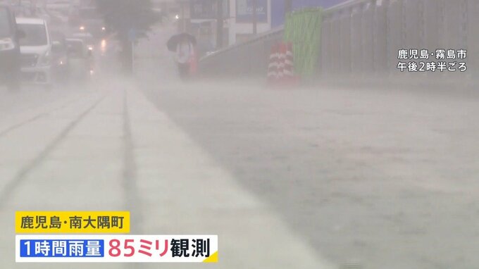 南大隅町では、鹿児島県が設置した雨量計で1時間に85ミリの猛烈な雨を観測。