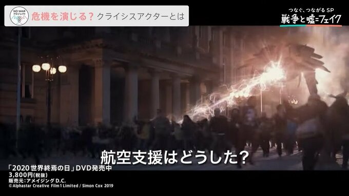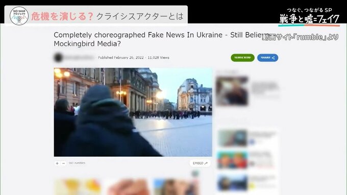 ウクライナ市民が逃げる映像がでっちあげられている、と説明されていますが、実際にはSF映画の撮影でした。