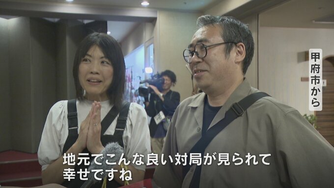 「藤井さん強すぎるからだれか同じくらい強いライバルが欲しいなと思っていたんですけど、きょうやってくれたなと。地元でこんな良い対局が見られて幸せですね」