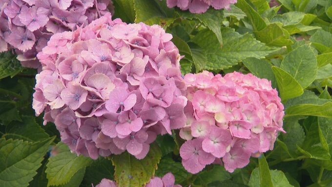 鮮やかな色からくすんだ色まで…様々な色合いのアジサイが、7月中旬まで楽しめます。