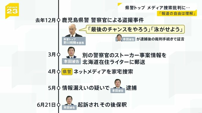 鹿児島県警は、県警を批判していたネットメディアを別の情報漏えいの疑いで4月に家宅捜索。本田被告はこのメディアのライターに情報を送っていたため事件が発覚し、逮捕に至ったとみられます。