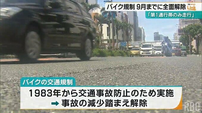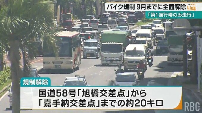 沖縄本島内の幹線道路、国道58号と国道330号の一部区間ではオートバイは第1通行帯のみを走行しなければならないという交通規制がありますが、県警はことし9月末までにこの規制を全て廃止すると発表しました。