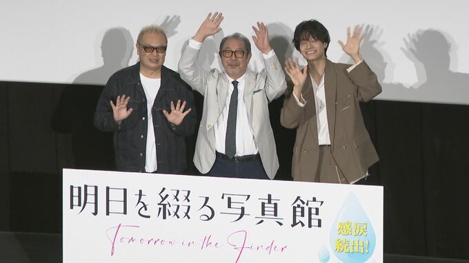 俳優生活60年の平泉成さんが初主演を果たした映画「明日を綴る写真館」の大ヒット御礼舞台挨拶が行われ、平泉さんが共演の佐野晶哉さん(Aぇ!group)、秋山純監督と共に出席しました。