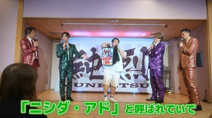 ニシダさんが自身のリュックに広告を貼り付け、様々な場所を移動する広告活動『ニシダ・アド』で、6月1日から純烈の宣伝をしてもらっていることをファンに明かし、会場を沸かせました。