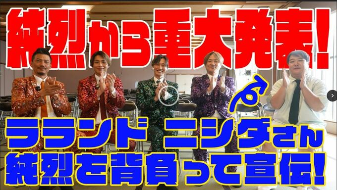 そして、動画後半にはリーダーの酒井一圭からニシダさんにお願いということで「11月25日純烈日本武道館ライブの告知をお願いしたいと思います」と『ニシダ・アド』での広告の文言の切り替えをお願いするのと同時に、初の日本武道館ライブ開催を発表しました。