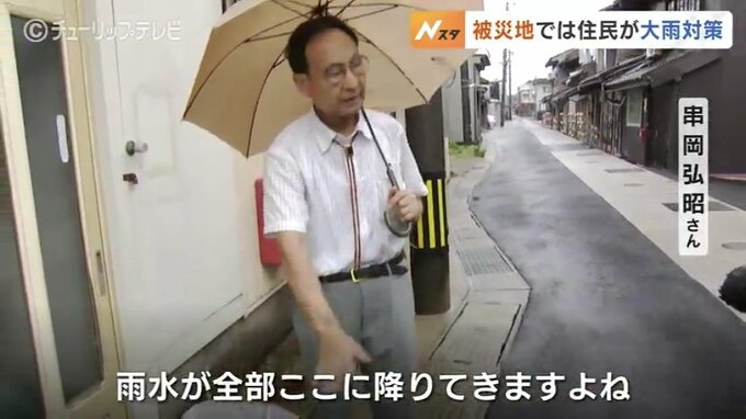 串岡弘昭さん:「雨水が全部ここに降りてきますよね。強い雨だともろに入ってくると思いましたので。大きな豪雨にならないように願っているだけですよね」