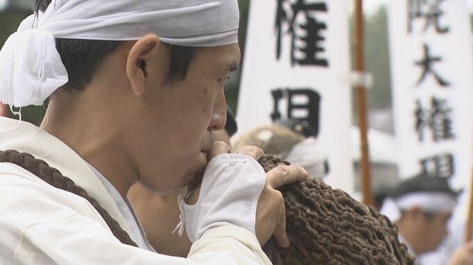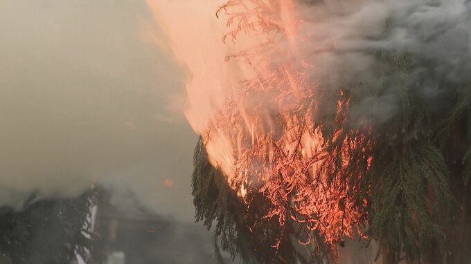 長野市の戸隠神社で、世の中の平和を祈る三年に一度の火祭り「柱松神事(はしらまつしんじ)」が行われました。