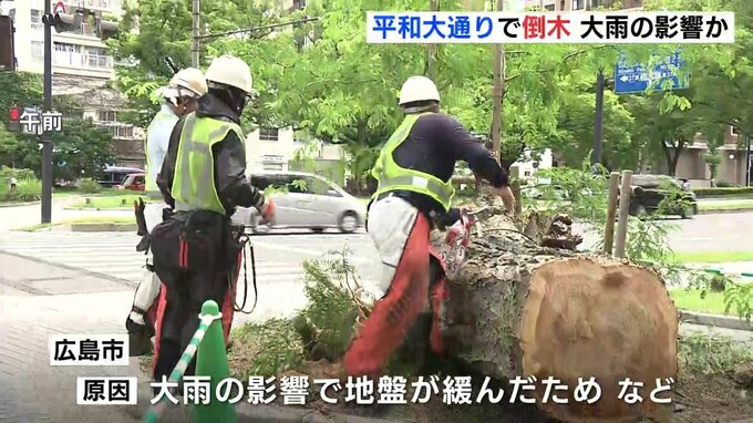 広島市中区の平和大通りで23日、街路樹が倒れているのが見つかりました。けが人はいませんでした。23日午後3時ごろ、広島市中区の平和大通りの緑地帯で通行人から「木が倒れている」と警察に通報がありました。広…