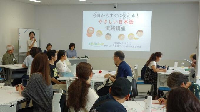講座は狛江市のNPO法人「こまえにほんごしえん・日本語スクール」が主催、八王子の市民団体「kokohana やさしい日本語でつながる八王子の会」の方々が講師をつとめました。