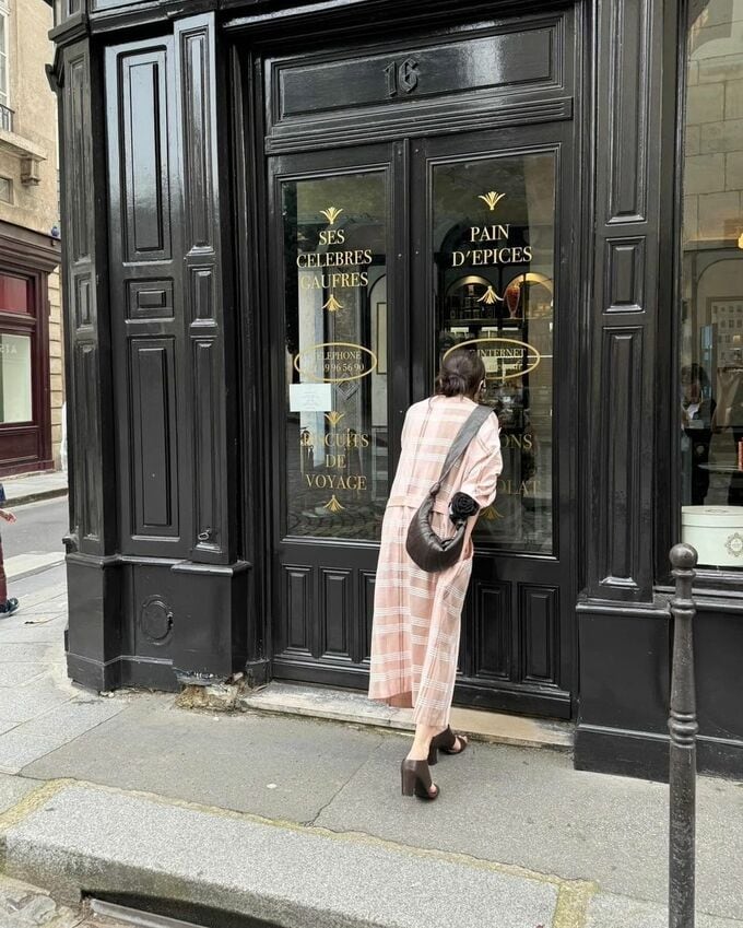 さらに、淡いピンクの服装でパリのお店を覗く後ろ姿も投稿されています。