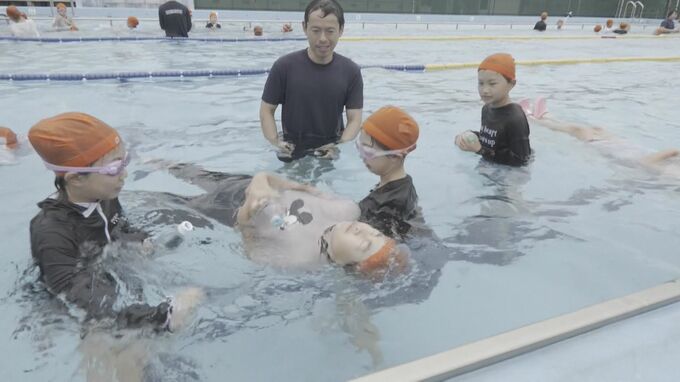 助かりたければ「浮いて待て」。夏休み中の水難事故を防ぐため、愛知県蒲郡市の小学校で講習会が始まりました。