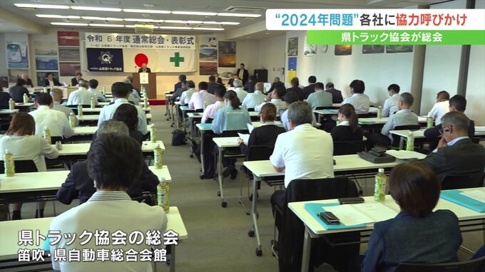 山梨県トラック協会の総会が開かれドライバーの残業規制が強化された2024年問題について各社へ協力を呼びかけました。