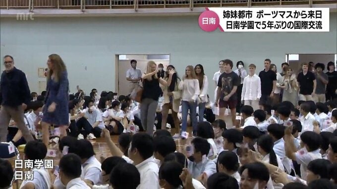 宮崎県日南市と姉妹都市のアメリカのポーツマス市の高校生らが日南学園を訪れ、5年ぶりの国際交流が行われました。日南学園の体育館では、24日、歓迎会が行われ、吹奏楽部の演奏でアメリカのポーツマス高校の生徒…
