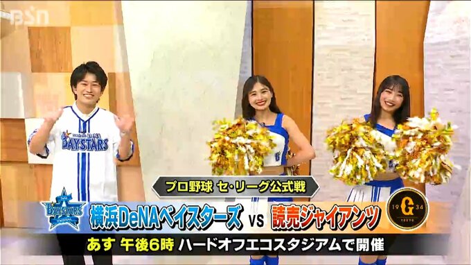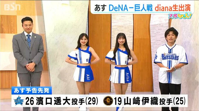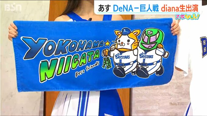 『横浜DeNAベイスターズ vs 読売ジャイアンツ』の新潟決戦を盛り上げるようと、横浜DeNAのオフィシャルパフォーマンスチーム『diana』から、AkiさんとArisaさんのお二人がスタジオにやってきました!