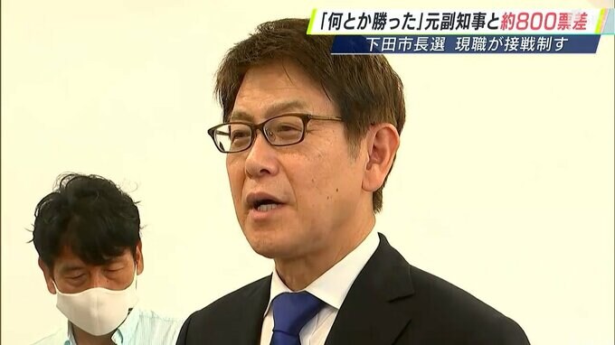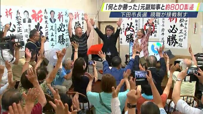 三つ巴となった下田市長選は、現職の松木正一郎さんが約5200票を獲得、元副知事の新人候補に競り勝ち、2度目の当選を果たしました。