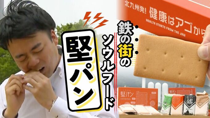福岡県北九州市で約100年前に誕生した「堅いお菓子」、堅パンは4月、堅さをより際立たせた新しいパッケージを採用しました。「堅さ」の秘密に迫りました。まるで「木の板同士を叩いている」かのような音を奏でるの…