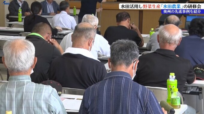 奥州市で24日開かれた研修会は岩手県が企画したもので、地域でコメから野菜の生産への転換を検討する営農組織の代表者などおよそ30人が参加しました。