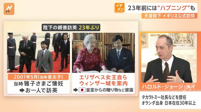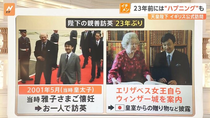 親善を目的とした訪問は23年ぶりのことで、前回は2001年5月に訪問されました。当時、雅子さまがご懐妊されていたので、皇太子としてお一人で訪英するという形になりました。