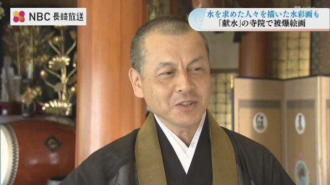 原爆投下後、多くの人が水を求めて押し寄せた長崎市の穴弘法奥之院霊泉寺で、被爆時の境内での様子を描いた水彩画が展示されています。爆心地から1.2キロ、標高130メートルにある穴弘法奥之院霊泉寺。原爆の爪痕が…