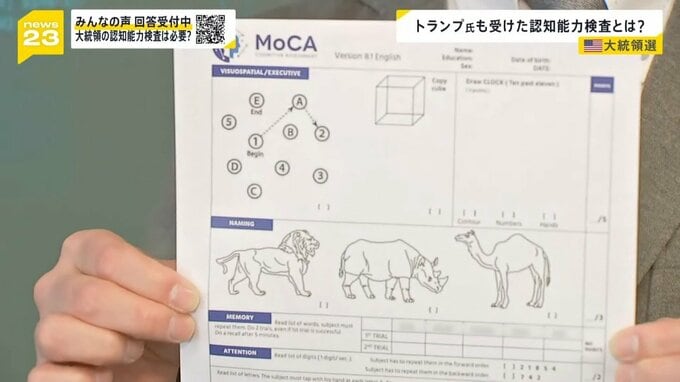 「これがトランプ前大統領が受けた認知能力テストです。アルファベットや数字、図形、そして動物のイラストなどが書かれています」