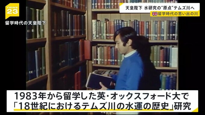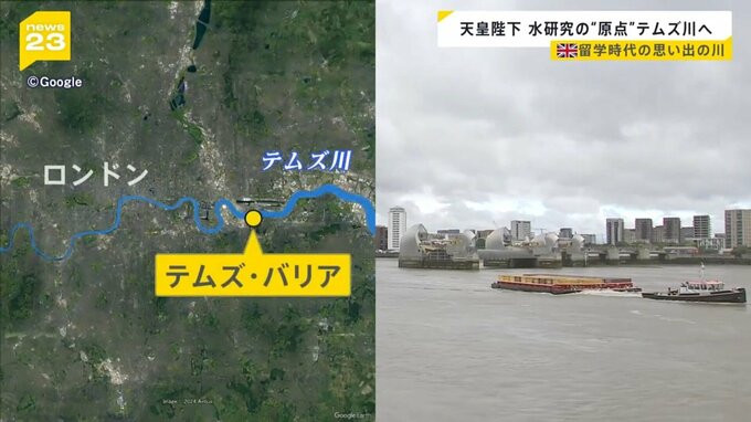 国賓としてイギリスを訪問中の天皇陛下は、日本時間の24日、テムズ川の洪水を防ぐ水門「テムズ・バリア」を視察されました。水にまつわる問題の研究をライフワークとされている陛下。テムズ川はその研究の原点で、オックスフォード大学留学時代の思い出もある川です。