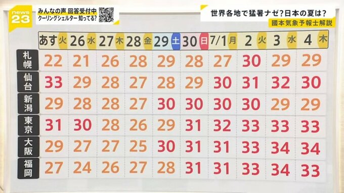 次の暑さのピークは30日頃から、全国各地で30度以上になるでしょう。