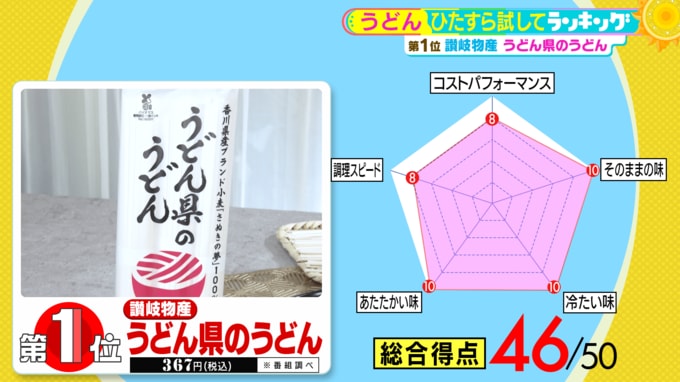 そして第1位は、讃岐物産の『うどん県のうどん』(税込367円 ※番組調べ)。