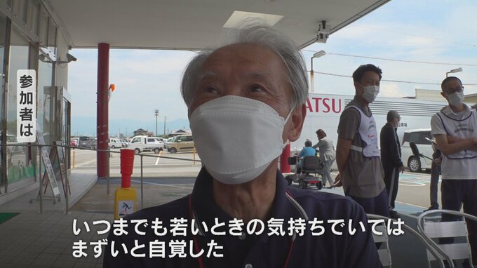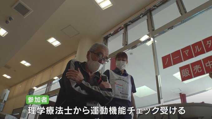 参加者は椅子から立って座る連続動作などを行い、理学療法士から運転操作に支障がないか運動機能チェックを受けました。