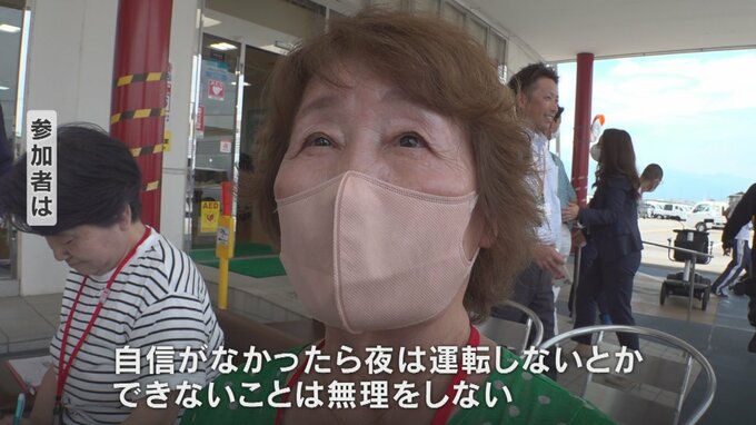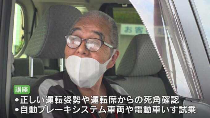 このあと正しい運転姿勢や運転席からの死角などを確認し、障害物を感知すると自動でブレーキがかかるシステムを搭載した車両や、免許なしで歩道を走行できる「電動車イス」に試乗しました。