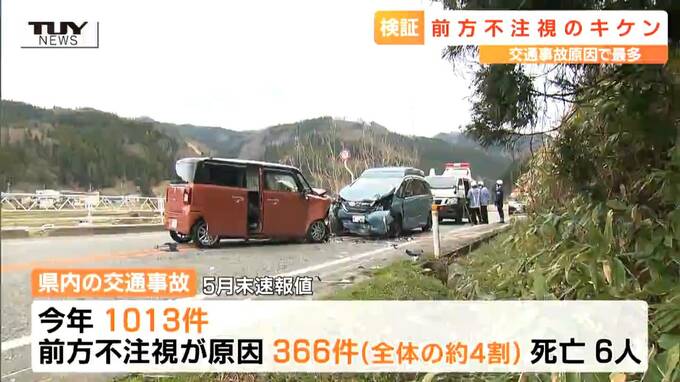 県警察本部によりますと、今年県内で起きた交通事故は1013件。このうち、前方不注視が原因だったのは366件と全体の4割近くにのぼり、6人が命を落としています。