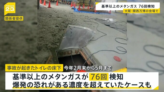事故が起きたトイレの床下では、作業員を退避させる基準以上のメタンガスが76回検知され、爆発の恐れがある濃度を超えていたケースもあったということです。