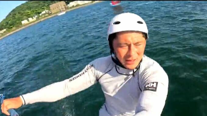 新種目・iQFOiL級というのは、ボードが水面から“浮いた状態”で走るのが特徴。