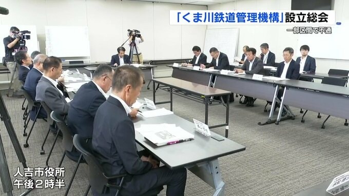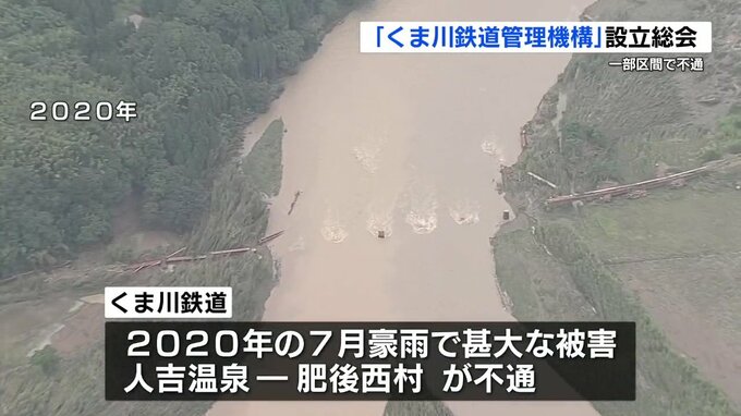 一部区間で不通となっているくま川鉄道(熊本県人吉市)の「上下分離方式」での全線再開に向け、線路など施設の管理を担う「くま川鉄道管理機構」の設立総会が開かれました。