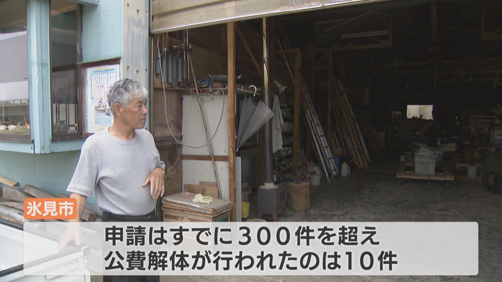 「公費解体」の申請はすでに300件を超えていますが、解体が行われたのは、この日の4件を含めわずか10件に留まっています。