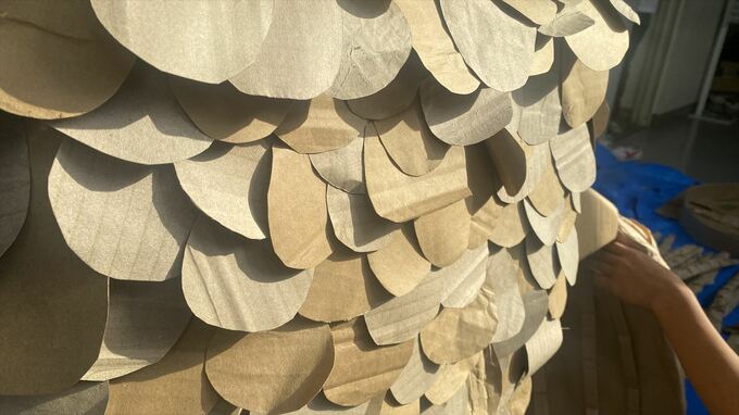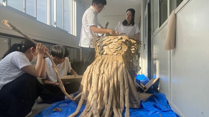 生徒たちはダンボールの特徴を生かして造形物の模様や質感を表現するなど、工夫を凝らし、およそ3週間かけて作品を作り上げます。