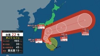 【台風情報】関東地方や東海地方が予報円に...台風22号(ハーロン)は急カーブし日本列島に接近の可能性 今後は "非常に強い" 勢力へ発達か このあとの勢力と進路を詳しく 日本への影響は? 今後の全国の天気を画像で 気象庁