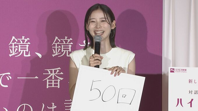 『ハイチオールの鏡』にちなみ、毎日の鏡を見る回数を問われると、朝日さんは「50回」と回答。”自分に自信があるから鏡を見ないと言いたいところだけど、こういうお仕事をしているので「前髪大丈夫かな」とか「歯に何か付いていないかな」とか。以前は自信がなくて、この3倍の150回くらい見ていた”と、明かしました。