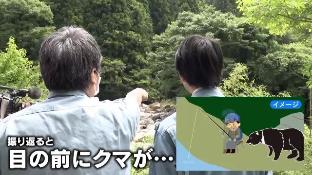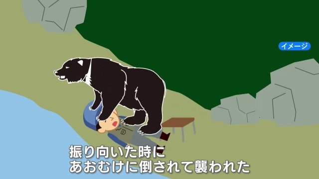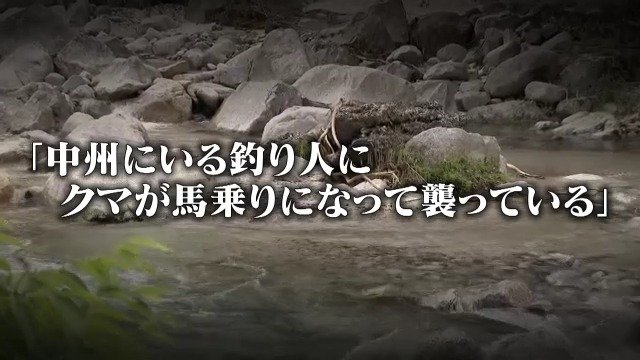 「中州にいる釣り人にクマが馬乗りになって襲っている」