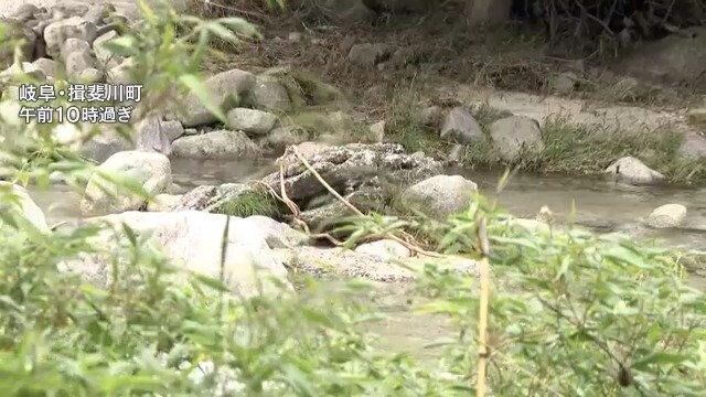 25日、釣り人がクマに襲われ、大けがをした岐阜県揖斐川町。26日朝から、町役場とともに地元の猟友会の新川茂至さんが周辺の見回りを行いました。