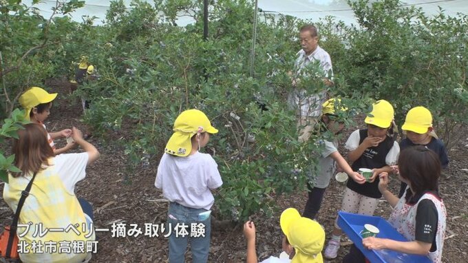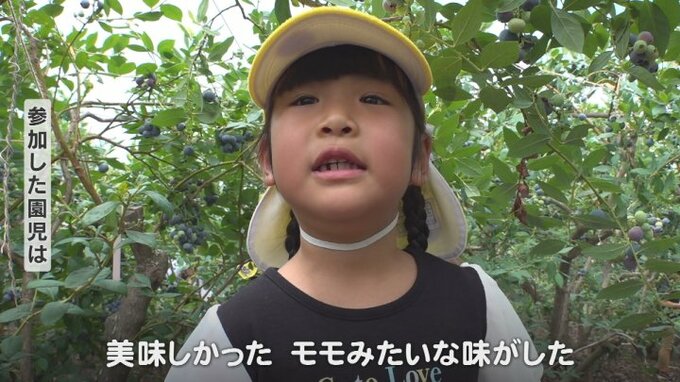北杜市の観光農園で保育園児がブルーベリーの摘み取りを体験しました。