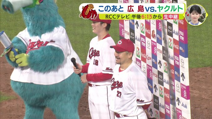 広島カープが勝つと、お伝えしているヒーローインタビュー。森下暢仁 × 會澤翼 バッテリーの活躍でヤクルトに快勝した6月25日のゲームからは、もちろん、この2人でした。