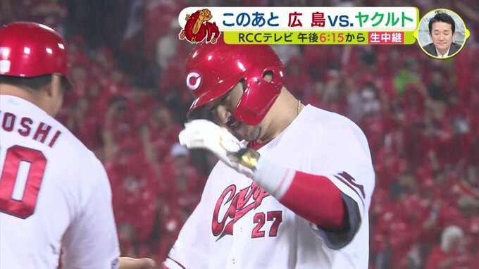 「ぼくも床田(寛樹)に電話して『1本打っていいよ』って言われたので、はい、打ちました」
