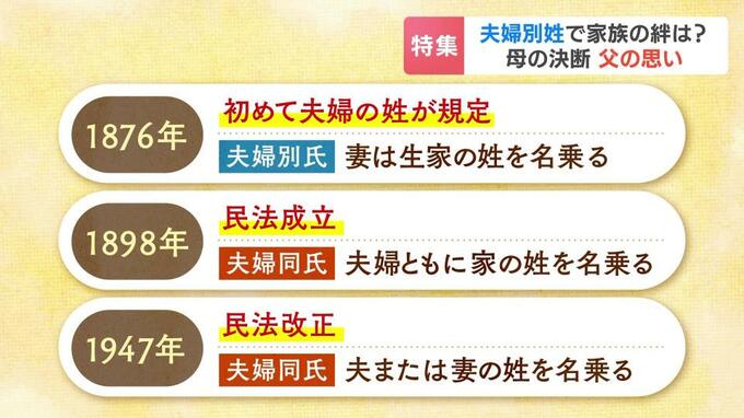 名字で“家族の絆”は変わるのか、別姓の両親を持つ記者が取材しました。