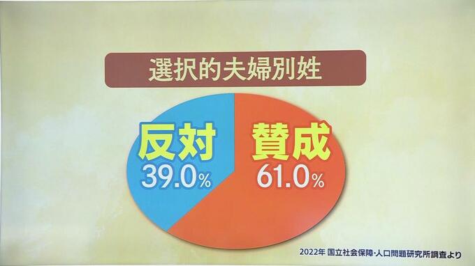 特集の冒頭でもお伝えした通り、最新の世論調査では【選択的夫婦別姓】に対し、賛成の声が61パーセントとなっています。