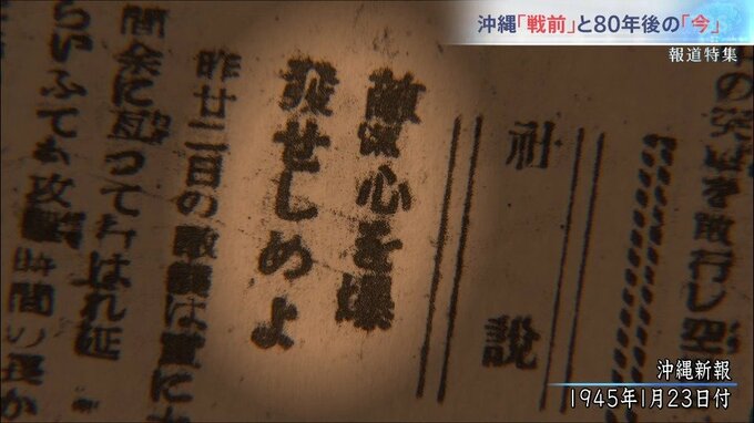 沖縄戦が始まる直前。新聞「沖縄新報」の見出しには、南西諸島の文字。社説は、敵愾心をあおった。