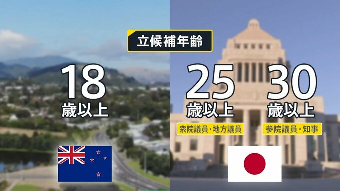 ソフィーさんが10代で飛び込んだ政治の世界。ニュージーランドでは、18歳から立候補が認められています。一方、日本は衆議院議員や地方議員は25歳、参院議員や都道府県知事は30歳から。