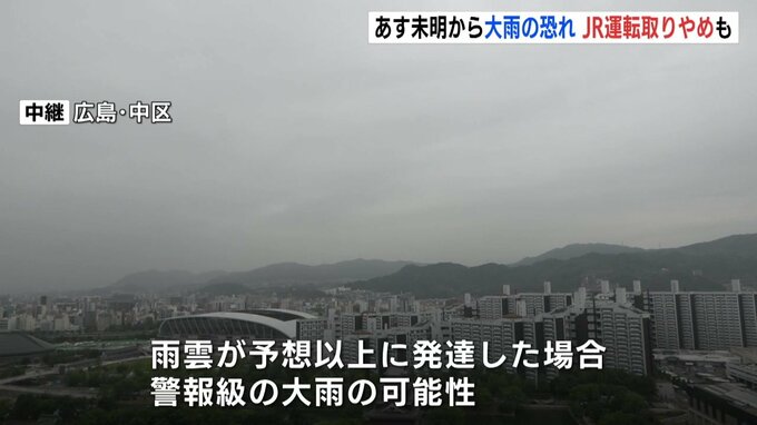 27日も梅雨らしいどんよりとした空が広がっています。27日正午前の時点で広島県内に目立った雨雲はかかっていませんが、午後は沿岸部から雨が降り始めるでしょう。東シナ海から四国付近にのびている梅雨前線が28日…