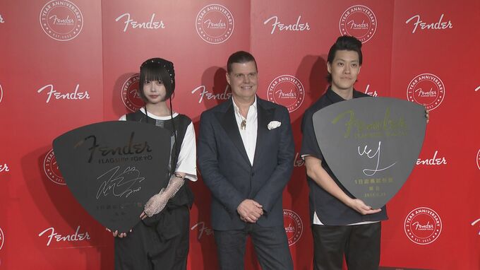 霜降り明星の粗品さんと、あのちゃんが「Fender Flagship Tokyo 一日店長就任式」に登壇しました。