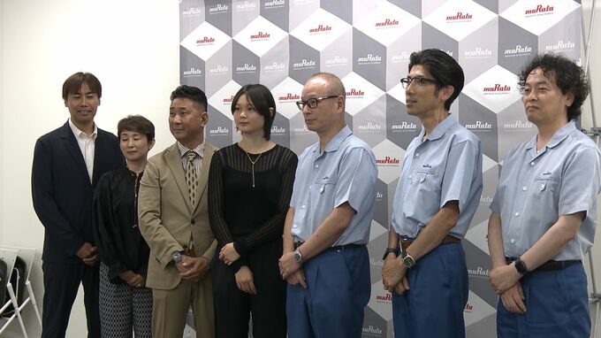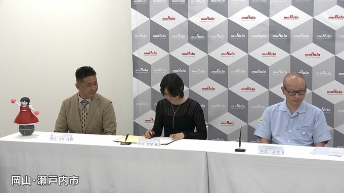 調印式は、瀬戸内市邑久町の岡山村田製作所で行われ、Juju選手が協定書にサインしました。