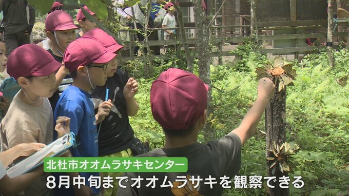 オオムラサキセンターではこの後、メスの羽化がピークとなり、国の蝶=オオムラサキの美しい姿は8月中旬まで観察できるということです。
